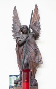 carver of the early 20th century in Oberammergau, southern Germany. It was formerly in the College of St Michael, a girls’ school in Northgate Street with close ties to St John’s. St Michael is an archangel who will fight and overcome the devil, and so is typically depicted as a warrior.